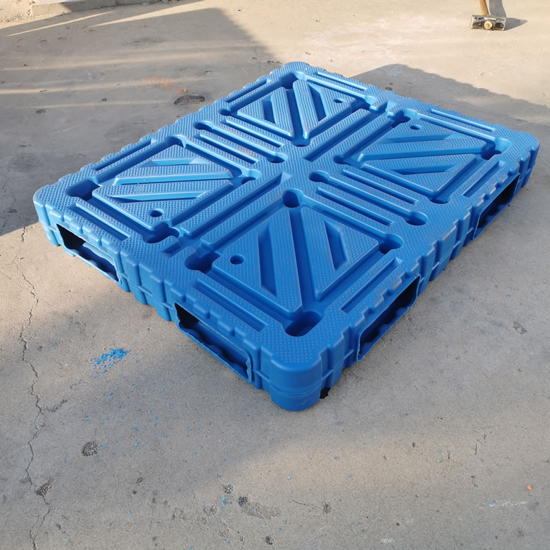 中空吹塑塑料托盤的生產與一般的中空制品吹塑成型方法相類似,因其產品較大,且為雙面型,需要較大的擠出機、合模機及模具等。目前國內中空成型機制造廠家已經研發出專業高速生產高強度吹塑托盤的超大型中空成型機,采用HDPE(低壓高密度聚乙烯)高強度塑料生產,成型速度較快,產品質量較好,具有高強度、壽命長的特點,一般吹塑托盤的使用壽命可以達到5~10年,同時可以在-40~70℃的環境下穩定工作。其產品的動載可以達到3t以上,抗彎強度均是較高的水平。是高強度使用環境的首選托盤,目前其價格比注塑托盤偏高一些,但其使用壽命特別長,所以它的性價比是所有托盤中最高的。吹塑托盤隨著成型設備價格的大幅度降低,將會在近年內獲得較快的發展。將對于節約有限的石油資源與物流成本有極大的好處。